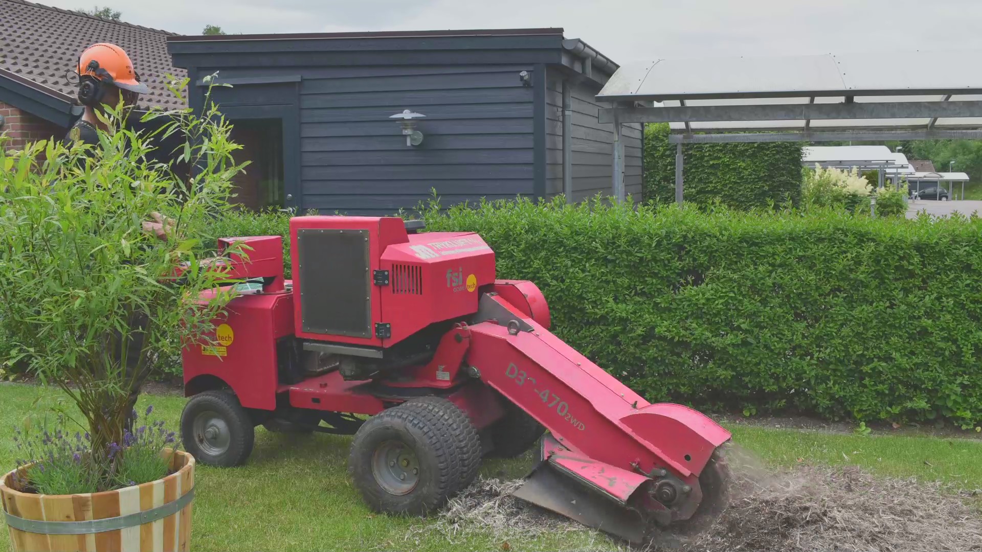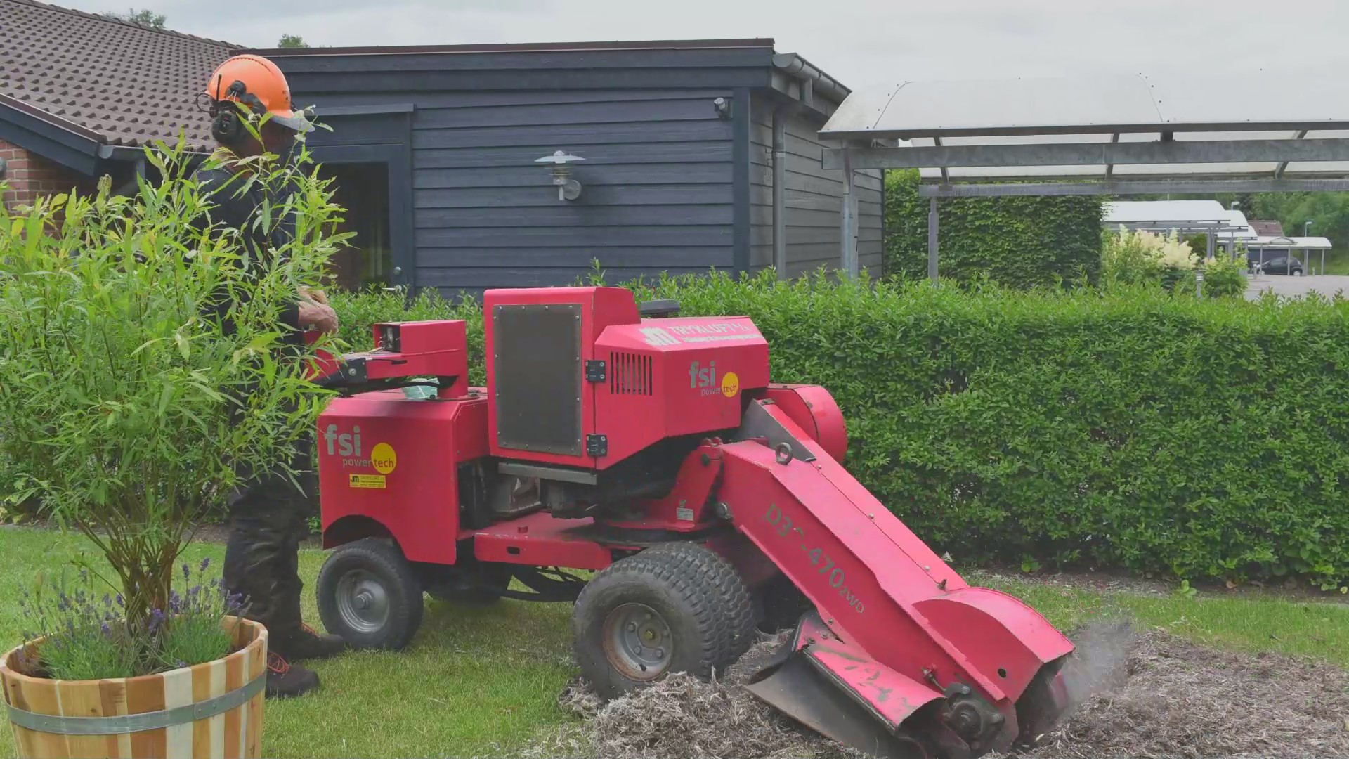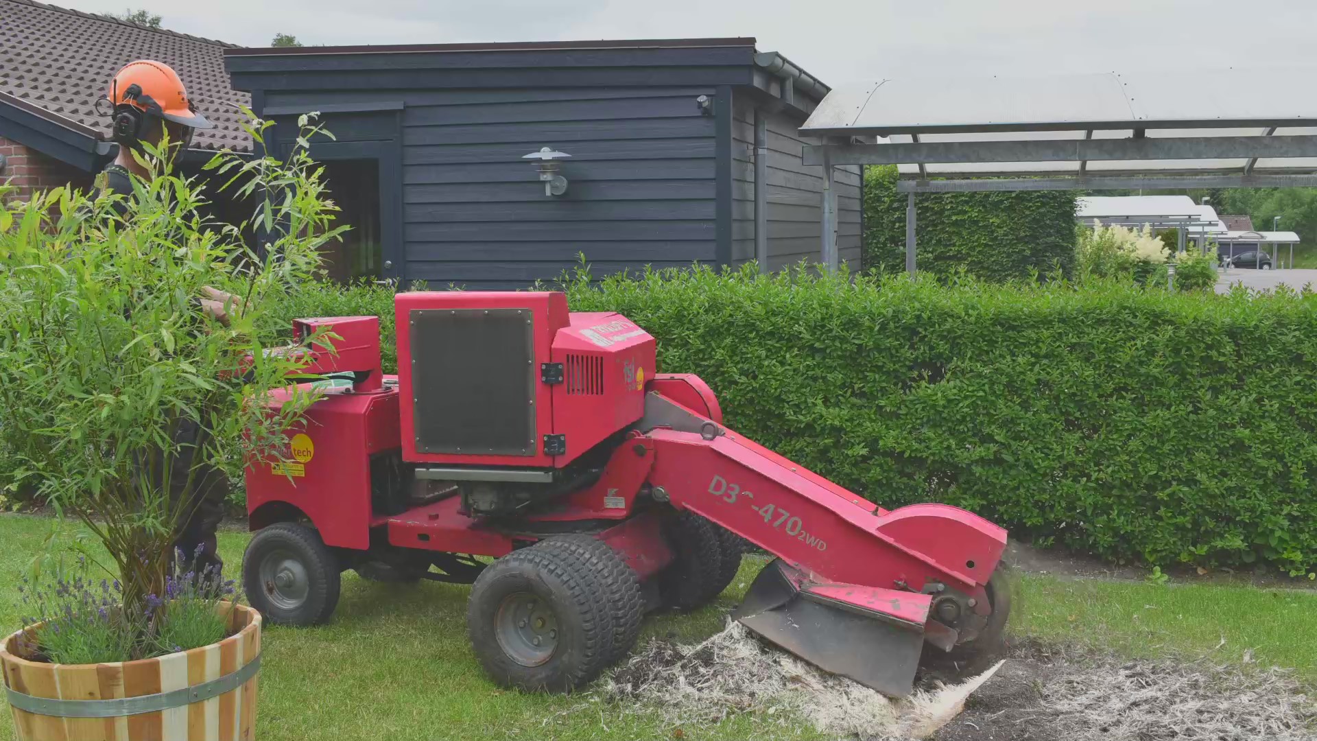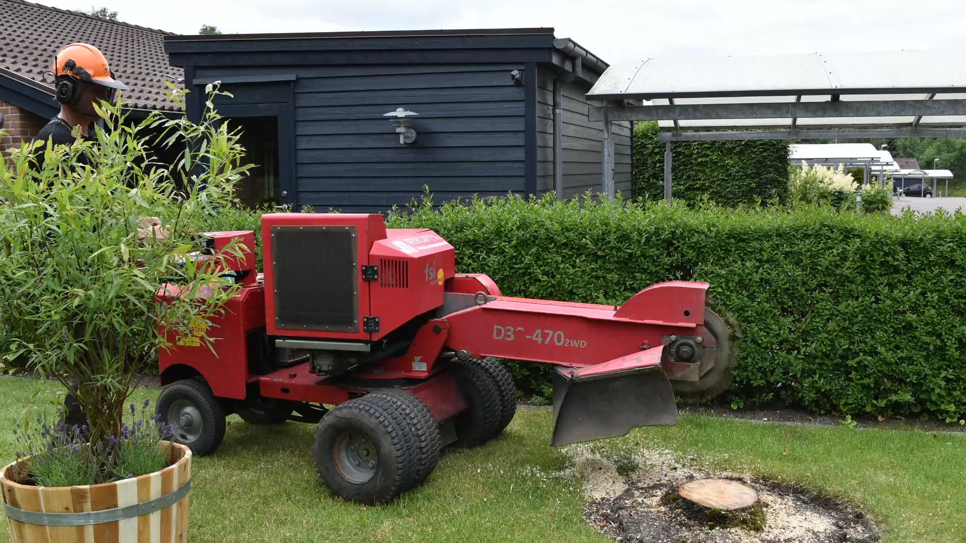 Ved stubfræsning fjernes stubbe og rødder sikkert og effektivt Stubbe fræses typisk 15-25 cm. under niveau, og efterlader en mindre bunke træspåner og muld som enten kan efterlades fjernes eller placeres i andre bede
